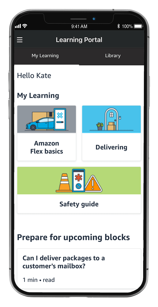 The Learning Portal in the Amazon Flex app is designed to help delivery partners deliver with confidence by providing hundreds of bite-sized videos and articles that cover topics including safety, earnings, payments, delivery advice, the Amazon Flex app, and much more. To further help you easily build your understanding of important topics, we created simple, easy to follow learning paths that bring key resources together into one convenient location and guide you through the information step by step.